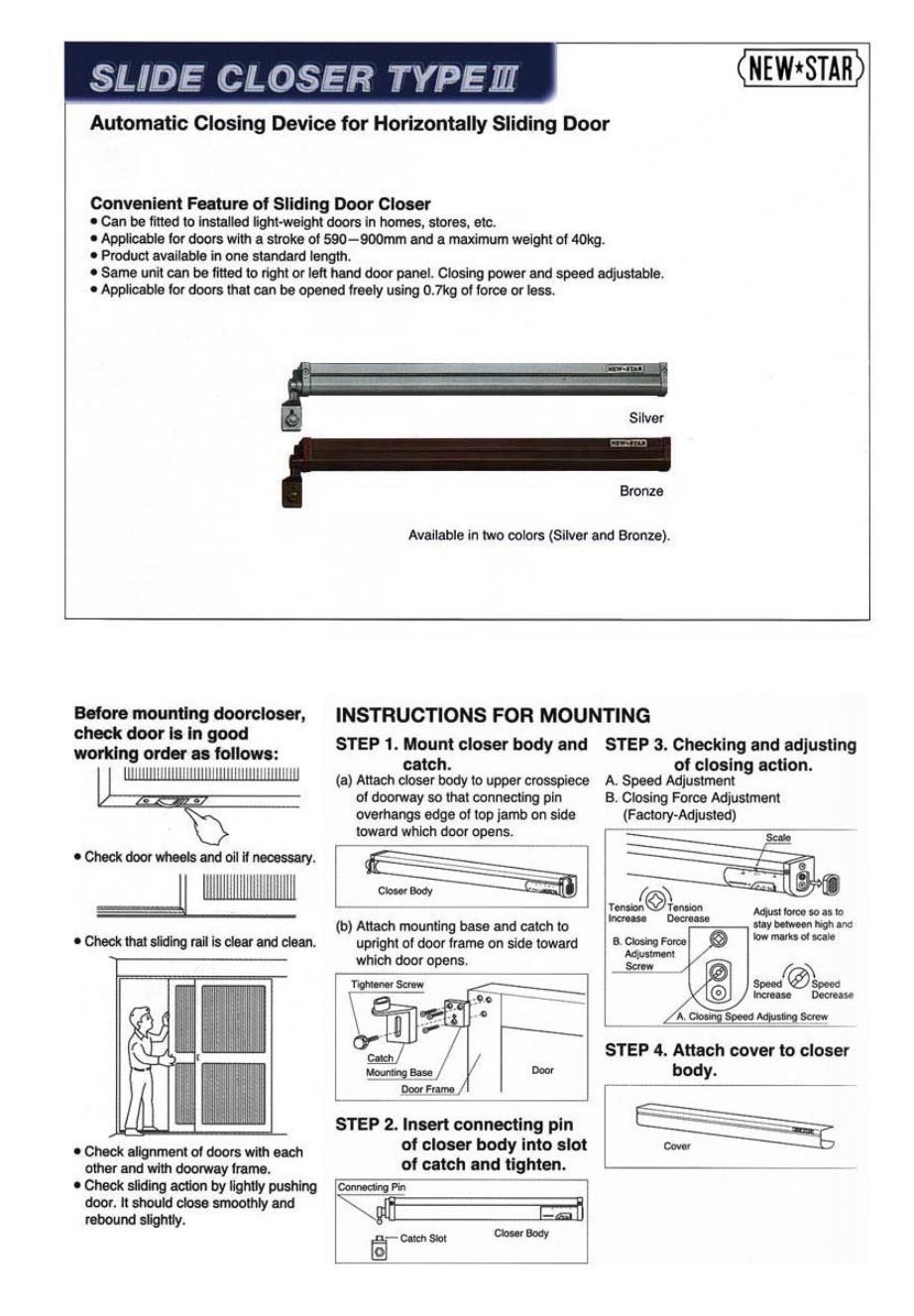 Type III โช๊คอัพประตูบานเลื่อน สำหรับประตูช่องเปิดไม่เกิน 900mm.
