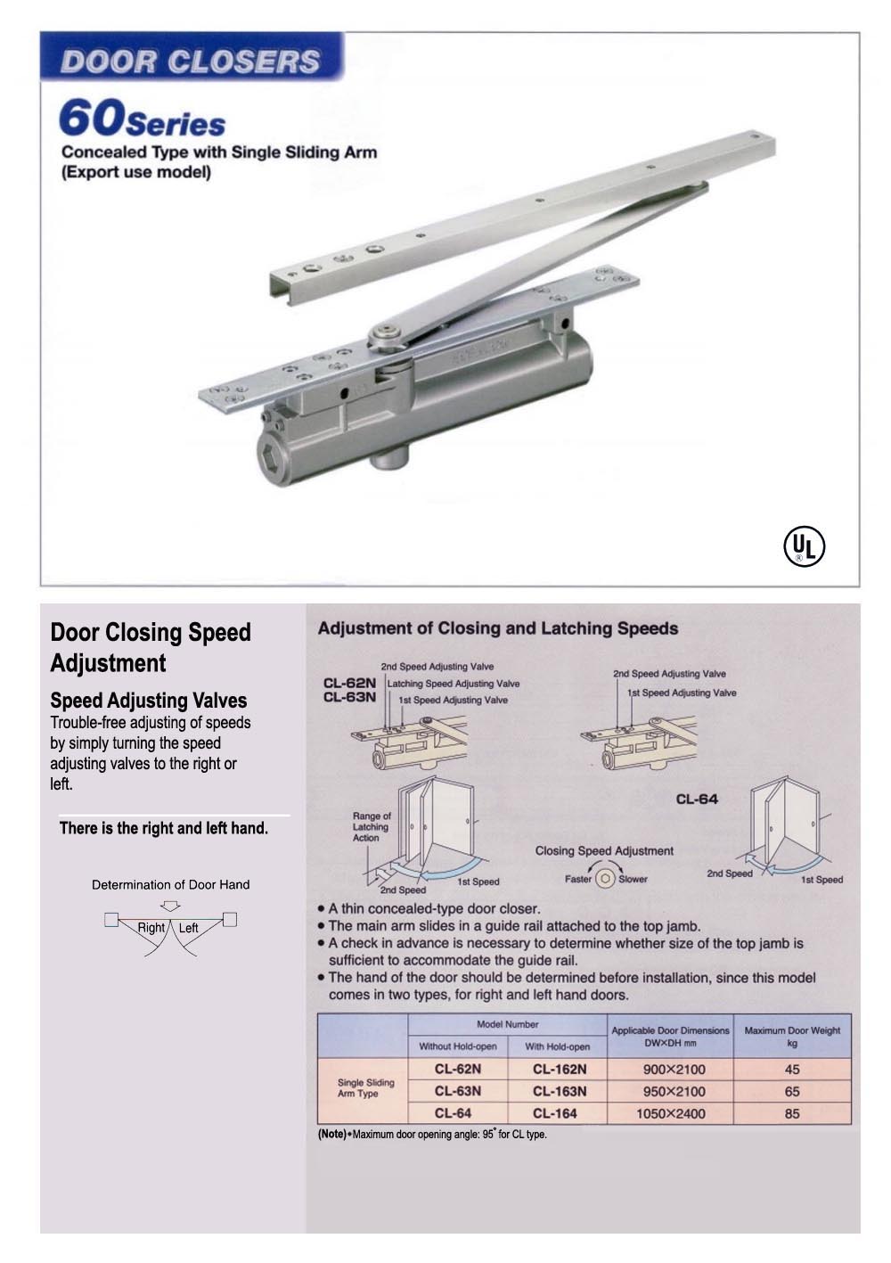 60 series โช๊คอัพประตูบานเปิด แบบซ่อนในบาน สำหรับประตูขนาดต่างๆ